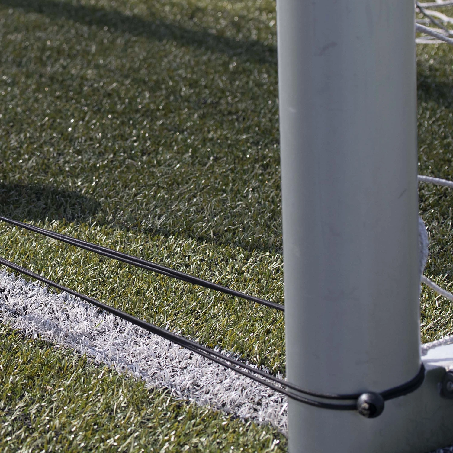 For artificial turf, extra-long elastic straps are included, allowing the bottom to be fastened to the goal.
